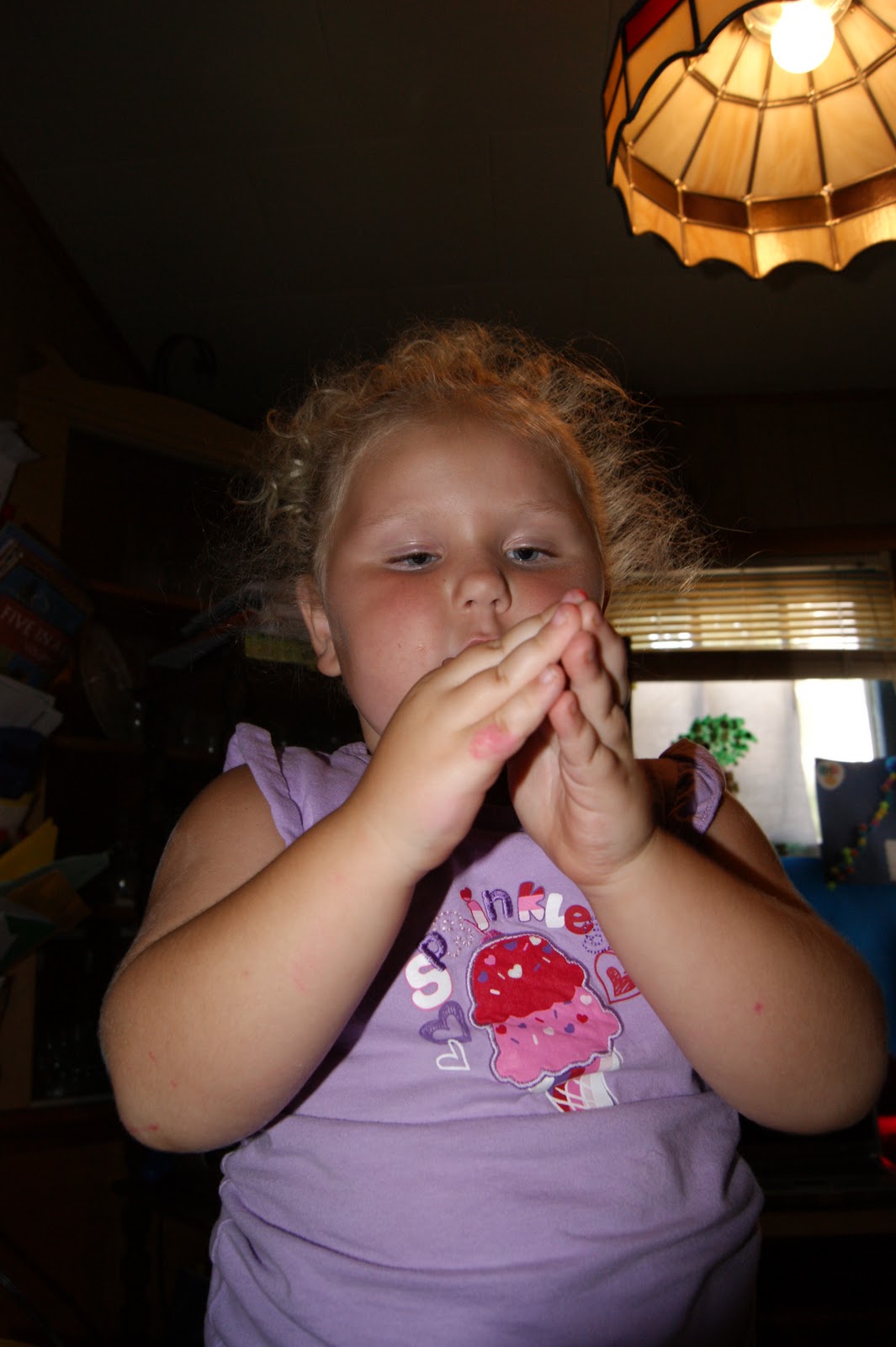 This...by the way...is supposed to be a barn she is making while doing a finger play. She was laughing so hard because she was having trouble making the lamb sound....it was a great way to work on a book.