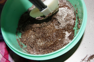 We made coffee ground playdough so that our fossils would look "real". And then we took some dinosaurs and started making our fossils..